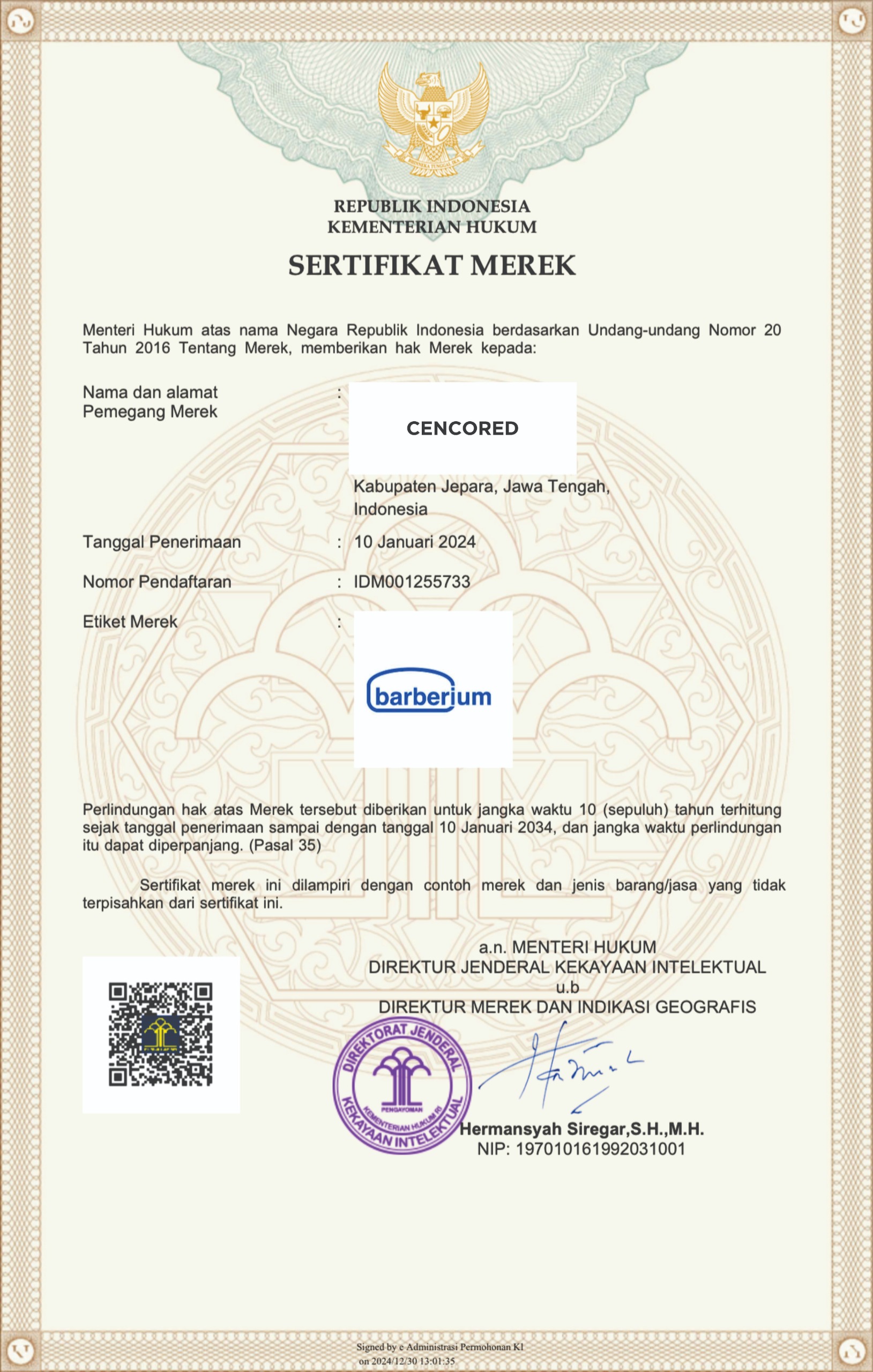 Segala bentuk penggunaan nama BARBERIUM BARBERSHOP tanpa adanya hubungan kerjasama usaha dan dinilai merugikan pemegang merk adalah termasuk kedalam perdata hukum.